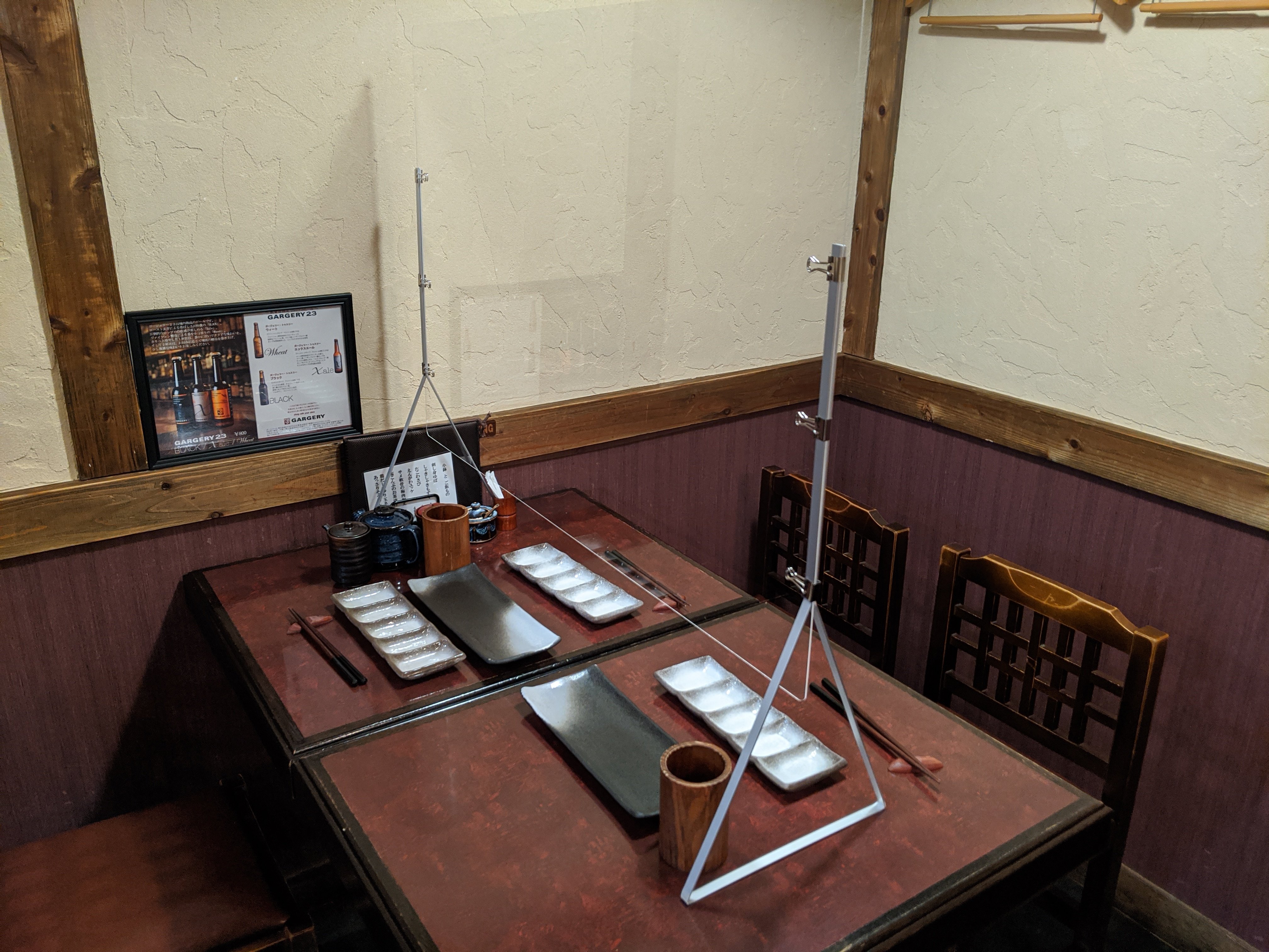 カウンターとテーブルにはアクリルパーテーションを配置しました。